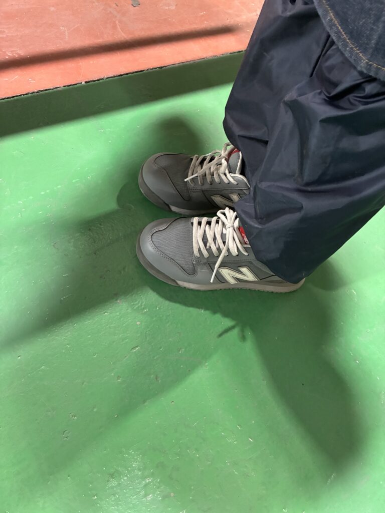こちらは安全靴です。つま先の中には鉄板が入っており安全性に優れています。
