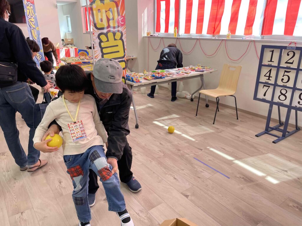 会場には、くじ引き・スーパーボールすくい・ボーリング・ダーツなど、
